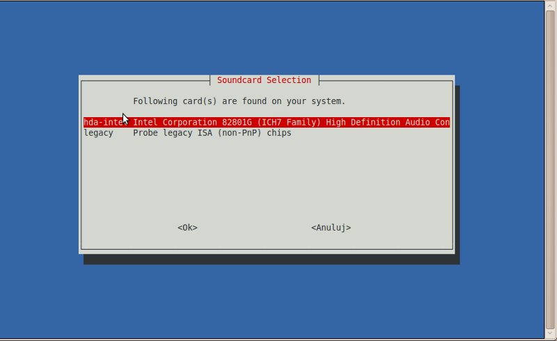 Jaka wersja Debiana? Jeżeli Lenny, to po instalacji alsy trzeba sprawdzić poleceniem: