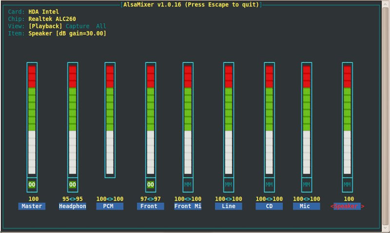 W drugim zaś alsamixer i pobaw się przełącznikami.