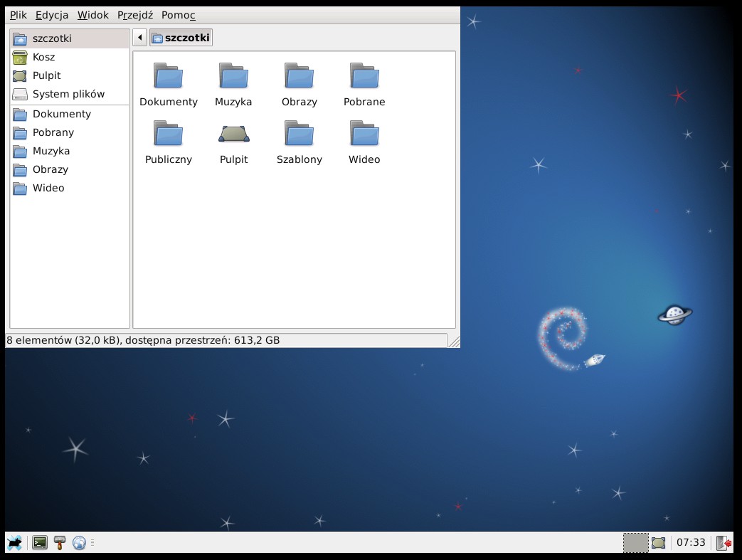 Dalej brak panelu. Oczywiście wpisuję jako zwykły użytkownik. A zalogowałem się na konto root i okazało się, że nie był w ogóle zainstalowany pakiet xfwm4.