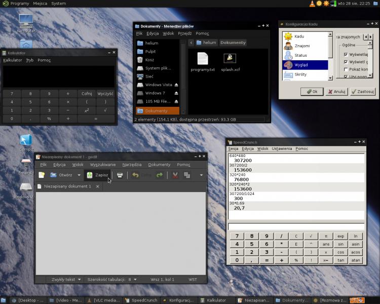 Kalkulator i menedżer plików w pełni wykorzystują motyw, edytor tekstu w połowie (ustawiają się kolory, przyciski są w stylu Windosws95), natomiast Kadu wcale. Dodam, że ustawiałem już motyw dla roota, posiadam emeralda i compiza (ale to raczej nie ma wpływu).
