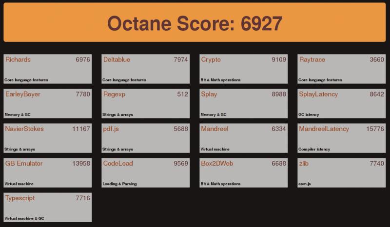 Benchmark przeglądarek Octane 2.0 - wyniki z Debiana