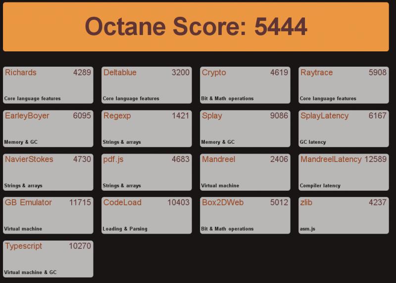 W związku z wypuszczeniem przez Google nowego benchmarku przeglądarek Octane2 http://octane-benchmark.googlecode.com/ ... index.html zaprezentuje ciekawe wyniki dla przeglądarek, które 'trzymam' w systemie (obecna wersja testowa Jessie):
