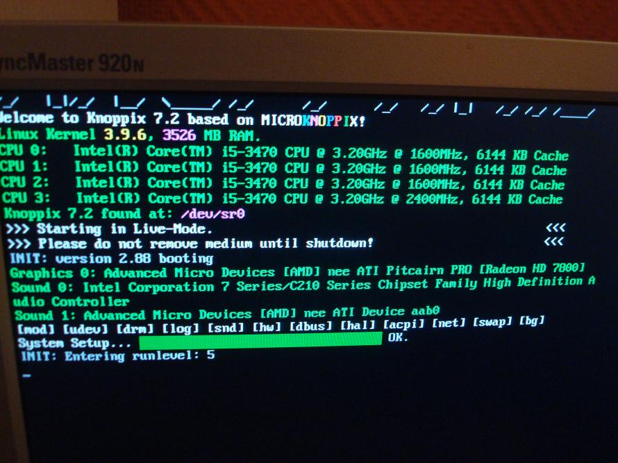 Spróbuj przełączyć się na inną konsolę np. Alt+Ctrl+F3 i wpisz:" pisze:...i wystartował Knoppix.