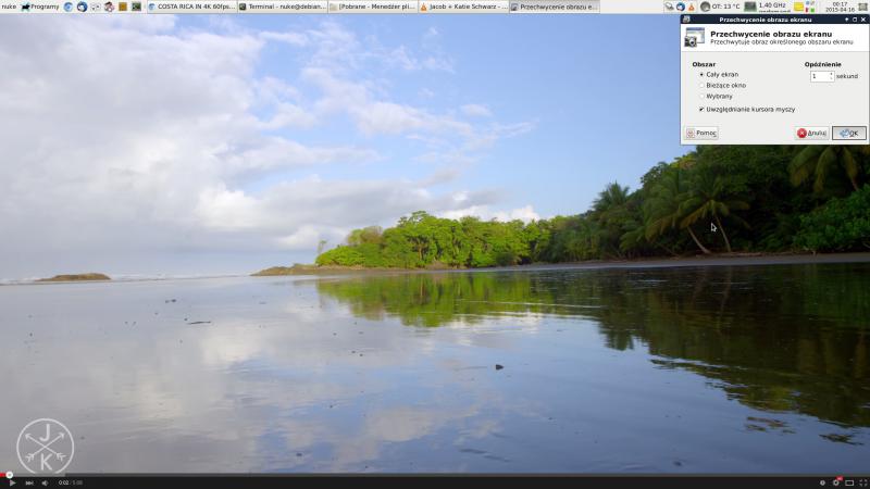 Debian odtwarzał płynnie obraz w rozdzielczości logicznej dla ekranu, ale obraz był gorszy. Mając dwa monitory obok siebie ciężko się mylić.