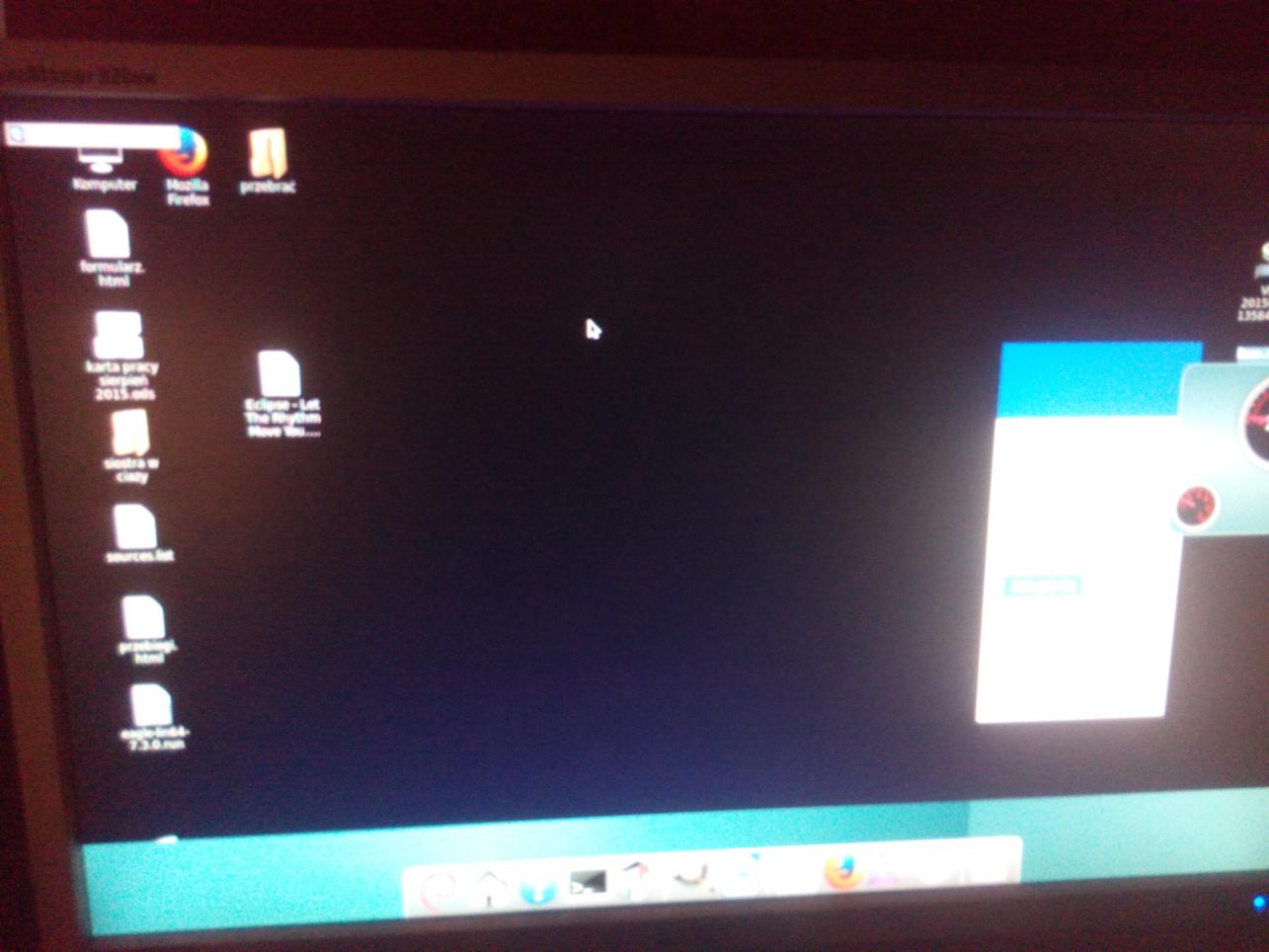 Nie było nic, nic nie dało się zrobić. Pulpit wyglądał jak na filmie. W końcu udało mi się zrestartować system i teraz za każdym razem gdy się zaloguję mam pulpit jak na zdjęciu. Brak możliwości zamknięcia jakiegokolwiek okna (brak krzyżyka) Dwie, może trzy godziny wcześniej użyłem polecenia apt-get upgrade. Czy to spowodowało że przeszedłem na niestabilną wersję systemu ?