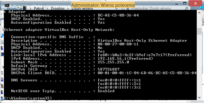 Srodkowe IP jest to IP virtualboxa (ethernet) natomiast dwa boczne to sa adresy przydzielone poprzez router. Wchodzac w ustawienia routera widze je jako attached devices.