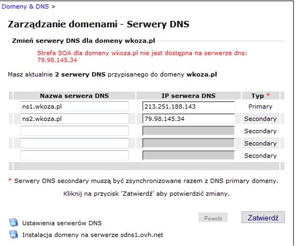 No jak? Przecież delegujesz tą domenę na właśnie serwery DNSpanelu OVH mojej domeny mają pozostać nie zmienione DNS-y OVH czyli: