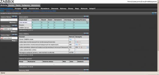 Otwiera się nam strona główna Frontendu Zabbix, z którego będziemy mogli kierować serwerem Zabbix.