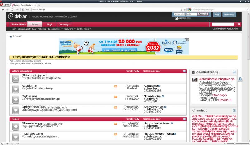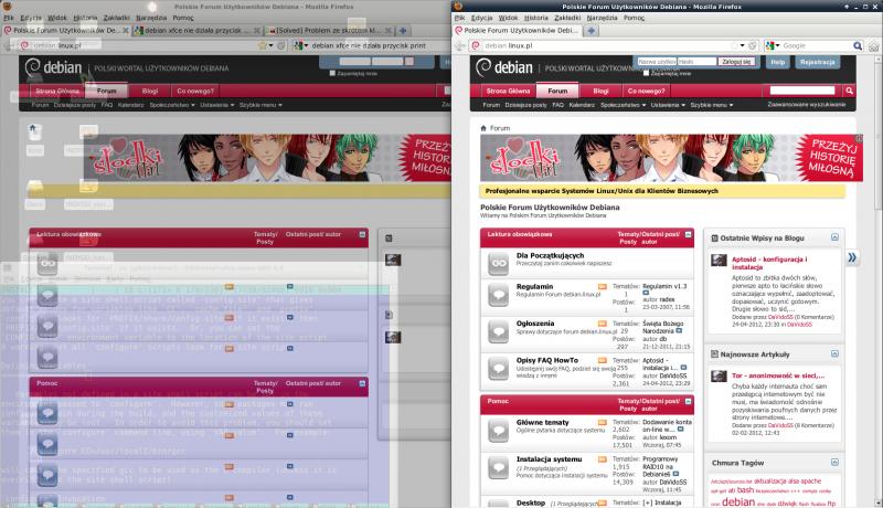 Używam Debiana w wersji testowej z Xfce 4.8 oraz przeglądarki firefox. Jak to zwykle bywa na początku było dobrze. Natomiast w pewnym momencie przeglądarka zaczęła wyświetlać błędnie niektóre strony.