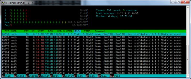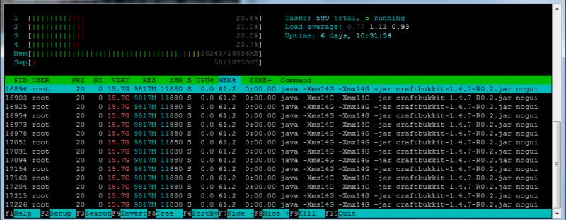htopOgólnie też dość dużym znakiem zapytania dla mnie jest, czemu zużycie RAM-u nie spada jeżeli liczba graczy maleje?