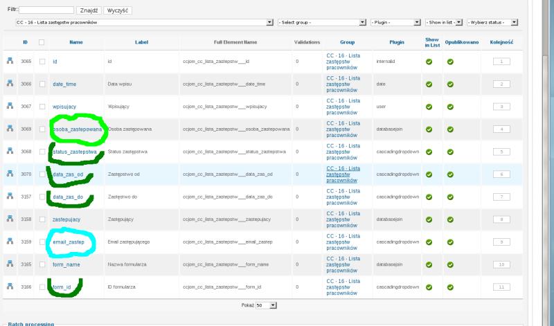 Porównywane pola `ccjom_cc_lista_zastepstw`.`osoba_zastepowana`=`ccjom_cc_zapotrzebowanie`.`recipient1` - `osoba_zastepowana` i `recipient1` są w tabelach 1 i 2 polami databasejoin do tabeli3 - (ccjom_users) z użytkownikami.