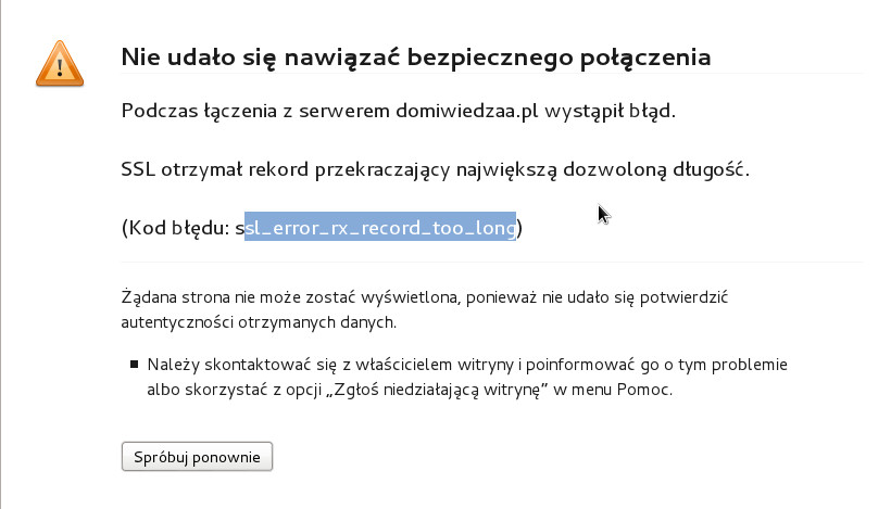 Mam problem ze swoim serwerem. Podczas używania protokołu SSL otrzymuję błąd widoczny na obrazku:
