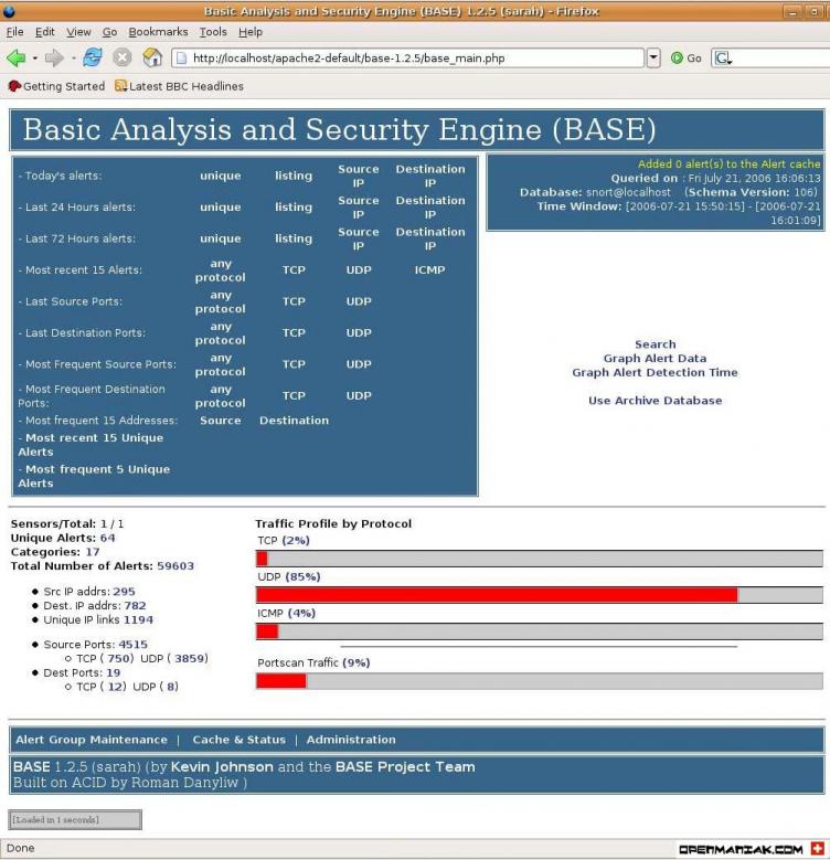 Druga sprawa że kiedy wyczyszczę logi BASE czyli zrobię to co w punkcie od 8 do końca. Po ponownym zapingowaniu czy próbie połączenia przez przeglądarkę www snort wykrywa to wszystko ale w BASE nic nie pokazuje. Nie ma informacji o alertach chociaż takie były.