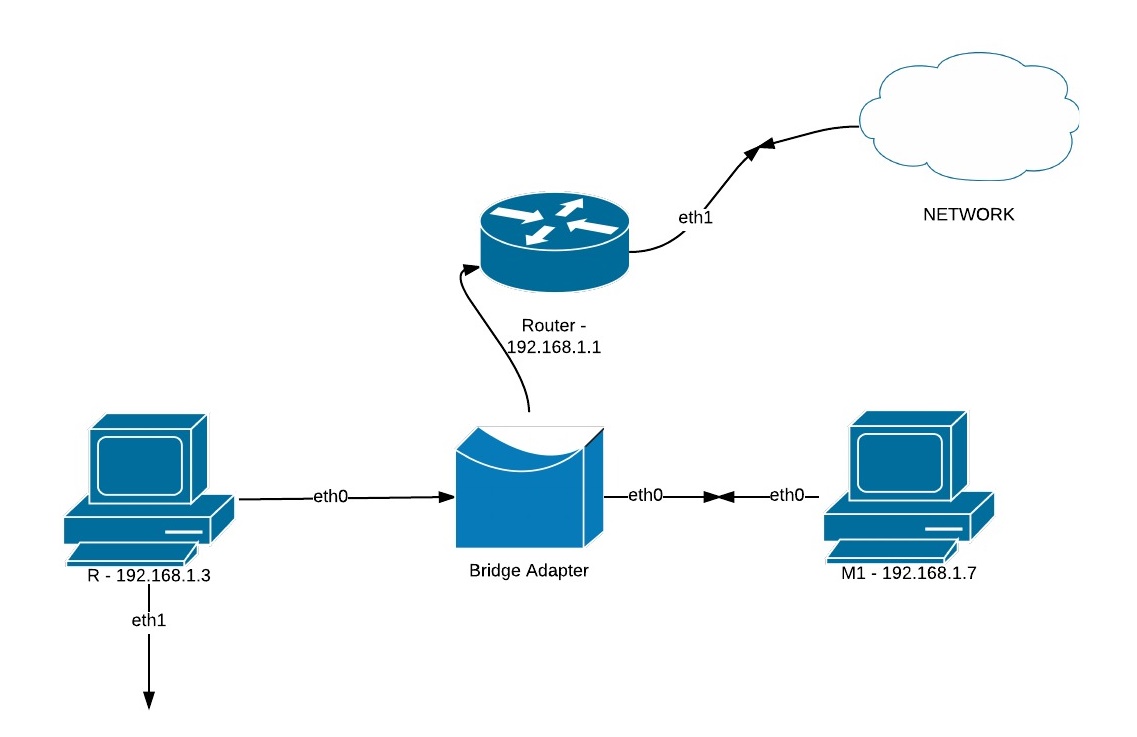 Z tym M2 mi sie pochrzanilo ma byc rzeczywisty komp ktory poprzez bridge ma udostepnic neta M1 na virtualboxie :)